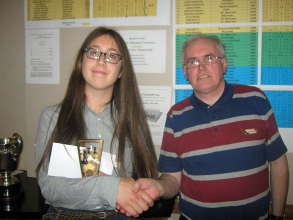 Anastasija Manojlovic (left), Junior Leinster Champion, with Peter Scott