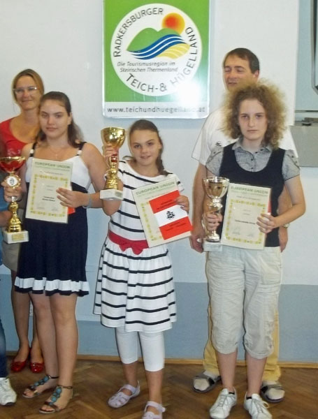 Diana Mirza (centre), winner of the girls' bronze medal, U14 European Youth Championships, Murek, Austria
